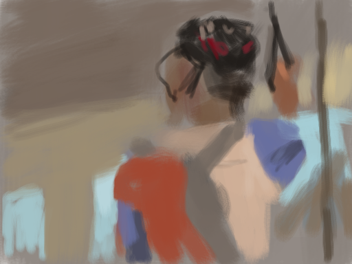 I was fortunate enough to go to the Massive Black/ AAU event in San Francisco this year. I saw some old friends and met new ones, and saw some super inspiring stuff. These are sketches I did on my DS while out there. One is from a figure painting session with Karl Kopinski, the other is from a Alla Prima head painting session with Coro, and the third is a super quick study of a fellow BART rider.